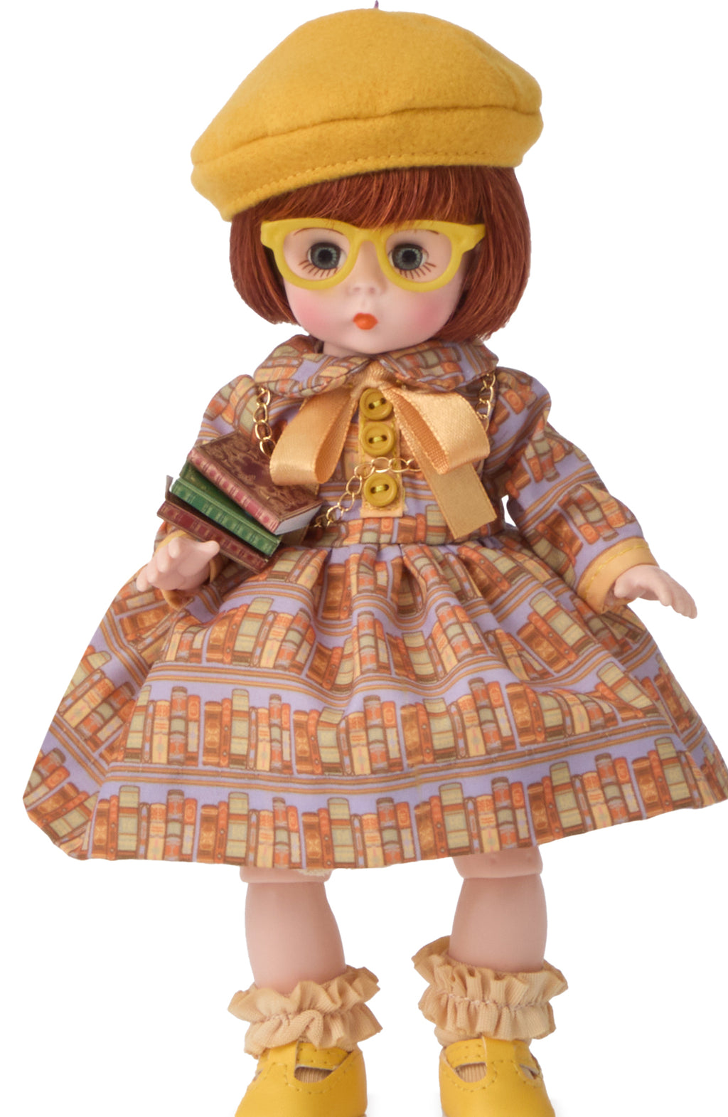 21145  Library Chic is an 8" fully articulated Wendy from Madame Alexander's Americana Collection with a short red Bob hairstyle, light skin, blue eyes and glasses!  Limited Editions of 200!  Expected to Ships in September!  Pre-Order to reserve yours!